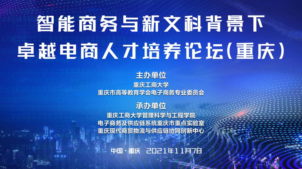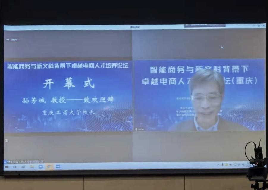 11月7日,为探索智能商务与新文科背景下卓越电商人才培养模式创新与实践,更好地总结借鉴高校人才培养改革先进经验,由重庆工商大学和重庆市高等教育学会电子商务专业委员会主办,重庆工商大学管理科学与工程学院、电子商务及供应链系统重庆市重点实验室、重庆现代商贸物流与供应链协同创新中心承办的“智能商务与新文科背景下卓越电商人才培养论坛”(线上线下结合)在我校成功举行。出席线上会议的有教育部高等学校电子商务类专业教学指导委员会主任、北京物资学院校长刘军教授以及来自清华大学、中国人民大学、中央财经大学、上海财经大学、对外经济贸易大学、北京交通大学、西安交通大学、厦门大学等17名电子商务专家,学校党委副书记、校长孙芳城教授、副校长李敬教授、教务处处长骆东奇教授等参加了线上论坛。管理科学与工程学院部分师生参加了线下论坛。本次会议共有三阶段:开幕式、实践报告以及圆桌论坛。
